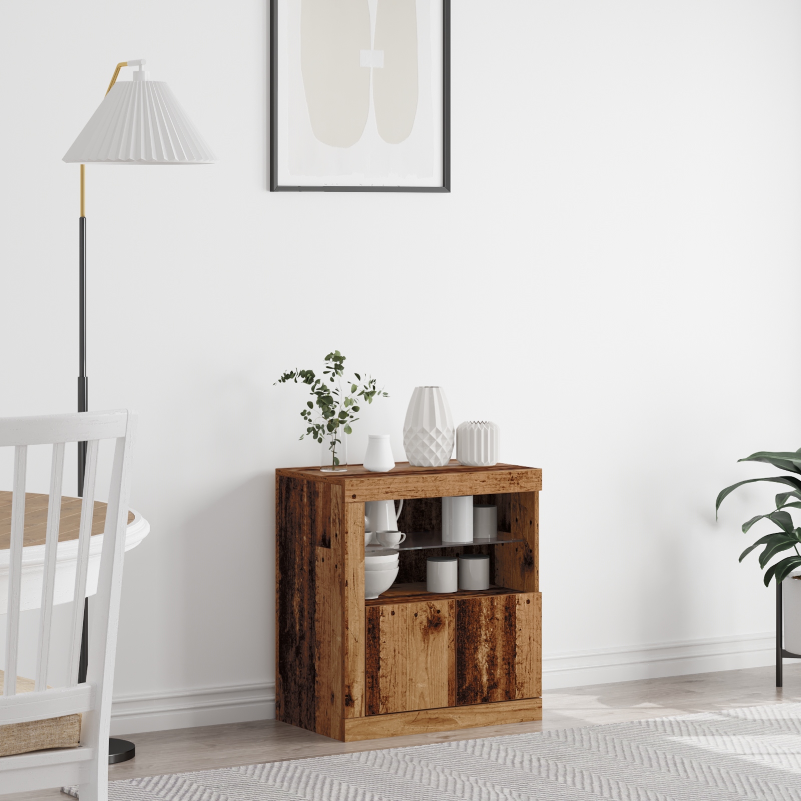 Bufetul ăsta rustic combină un farmec neaoș cu utilitatea. E piesa de bază perfectă pentru living sau zona de dining, având o formă dreptunghiulară care se potrivește în diverse aranjamente. Lemnul prelucrat și lumini LED drăguțe adaugă un pic de căldură. Designul lui e un mix frumos între rustic și modern, fiind o alegere versatilă pentru orice casă.
