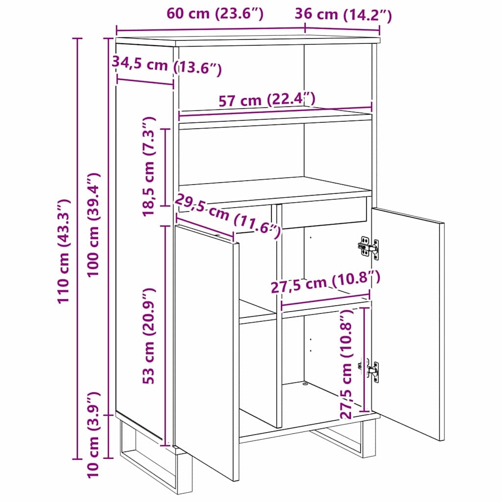Bufet Negru 60 x 36 x 110 cm Lemn compozit