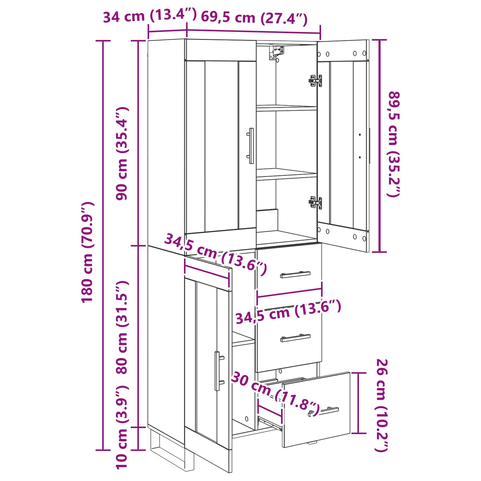 - Dimensiuni generale: 69,5 x 34 x 180 cm (L x l x î)