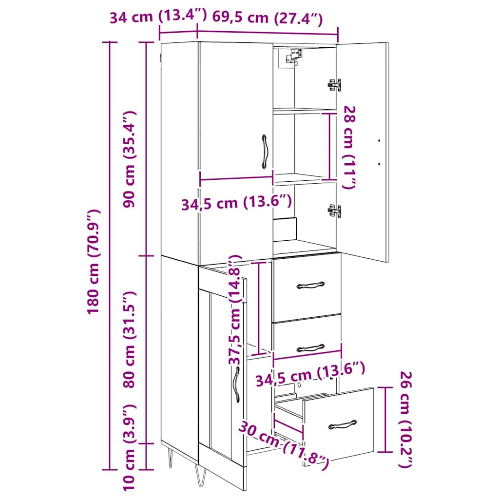• 1 x Comodă: 69,5 x 34 x 90 cm (LxWxH)