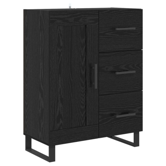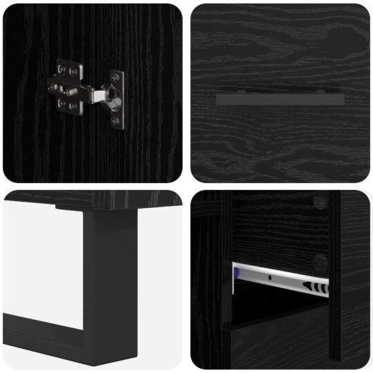 Bufet cu sertar 2 pcs Stejar Negru Lemn Stratificat și Sticlă