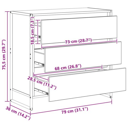 - Dimensiuni generale: 79 x 36 x 75,5 cm (L x l x î)