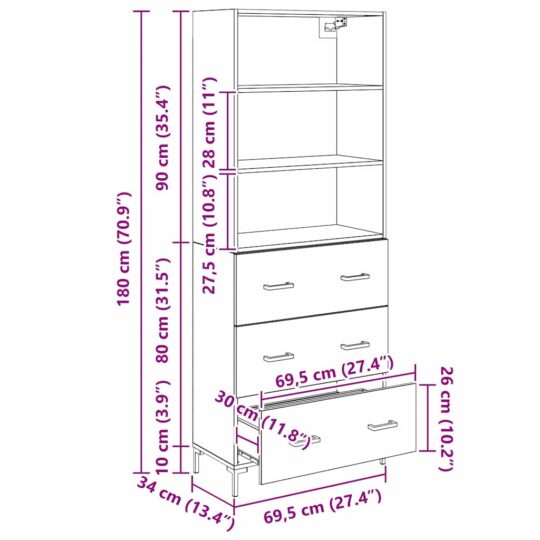 Bufet cu sertar Lemn Vechi 69,5 x 32,5 x 180 cm Lemn compozit