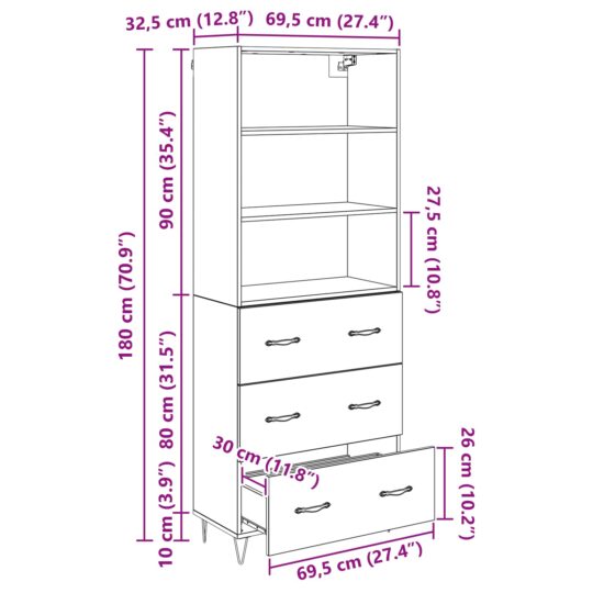 - 1 x Blat pentru highboard: 69.5 x 32.5 x 90 cm (LxWxH)