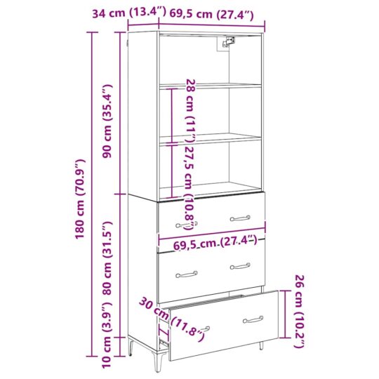 - 1 x Sideboard: 69.5 x 34 x 90 cm (LxWxH)