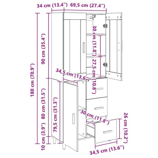 - Dimensiuni generale: 69,5 x 34 x 180 cm (L x l x î)