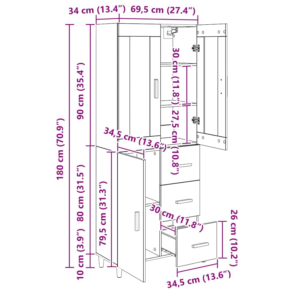 Bufet cu sertar Lemn Vechi 69,5 x 34 x 180 cm Lemn compozit