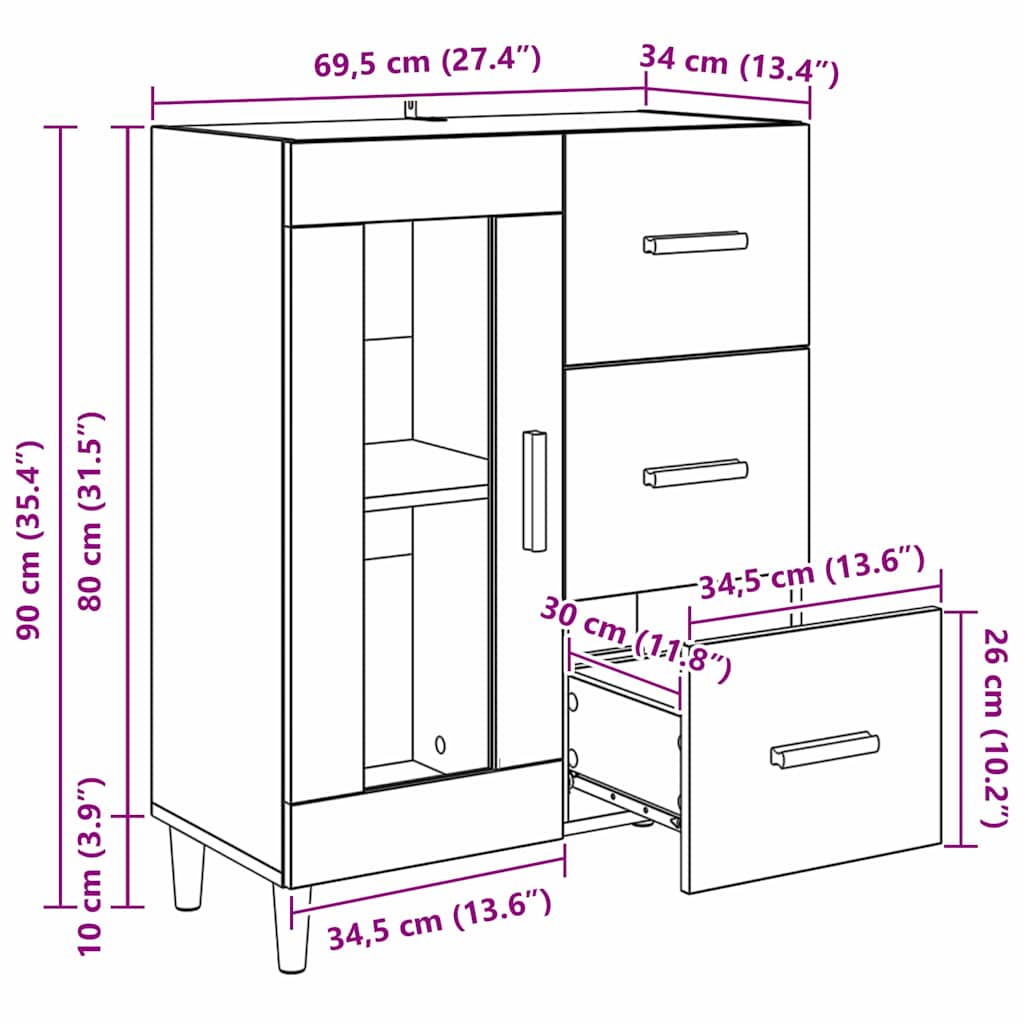 Bufet cu sertar Lemn Vechi 69,5 x 34 x 90 cm Lemn compozit