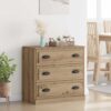Bufetul ăsta e o unitate de depozitare modernă, dreptunghiulară, care îmbină stilul cu funcționalitatea. Designul său chic adaugă o notă rustică în living sau dining, oferind versatilitate în utilizare. Cu mânere în formă de D pentru un acces mai simplu la sertare, bufetul emană căldură și farmec natural, creând o atmosferă primitoare. E gândit pentru interior, iar designul lui elegant se potrivește cu orice decor, integrându-se perfect în camere cu stiluri moderne sau tradiționale.