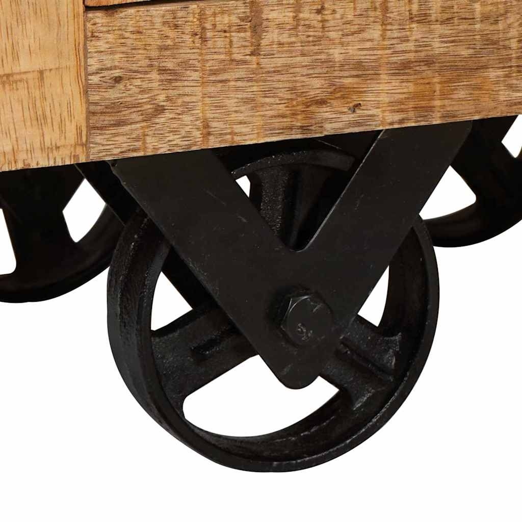 Bufetul ăsta cu roți e o adăugare stylish și practică în orice dining. E făcut din lemn masiv de mango, cu o nuanță faină de brun care se îmbină cu multe stiluri de interior. Designul lui elegant și roțile netede îi dau un vibe modern, fiind ideal pentru lounge-uri și bucătării. E perfect pentru a-ți organiza esențele de dining și a arăta bine.