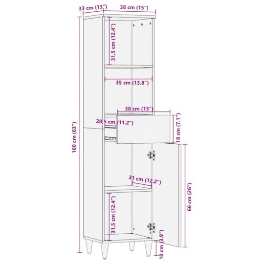 • Dimensiuni generale: 38 x 33 x 160 cm (L x l x î)