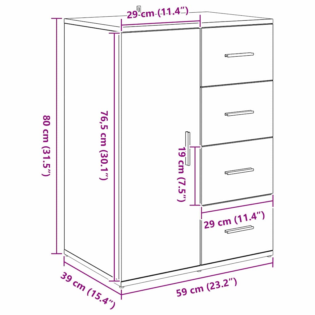 Bufet cu sertar Stejar Artizanal 59 x 39 x 80 cm Lemn compozit