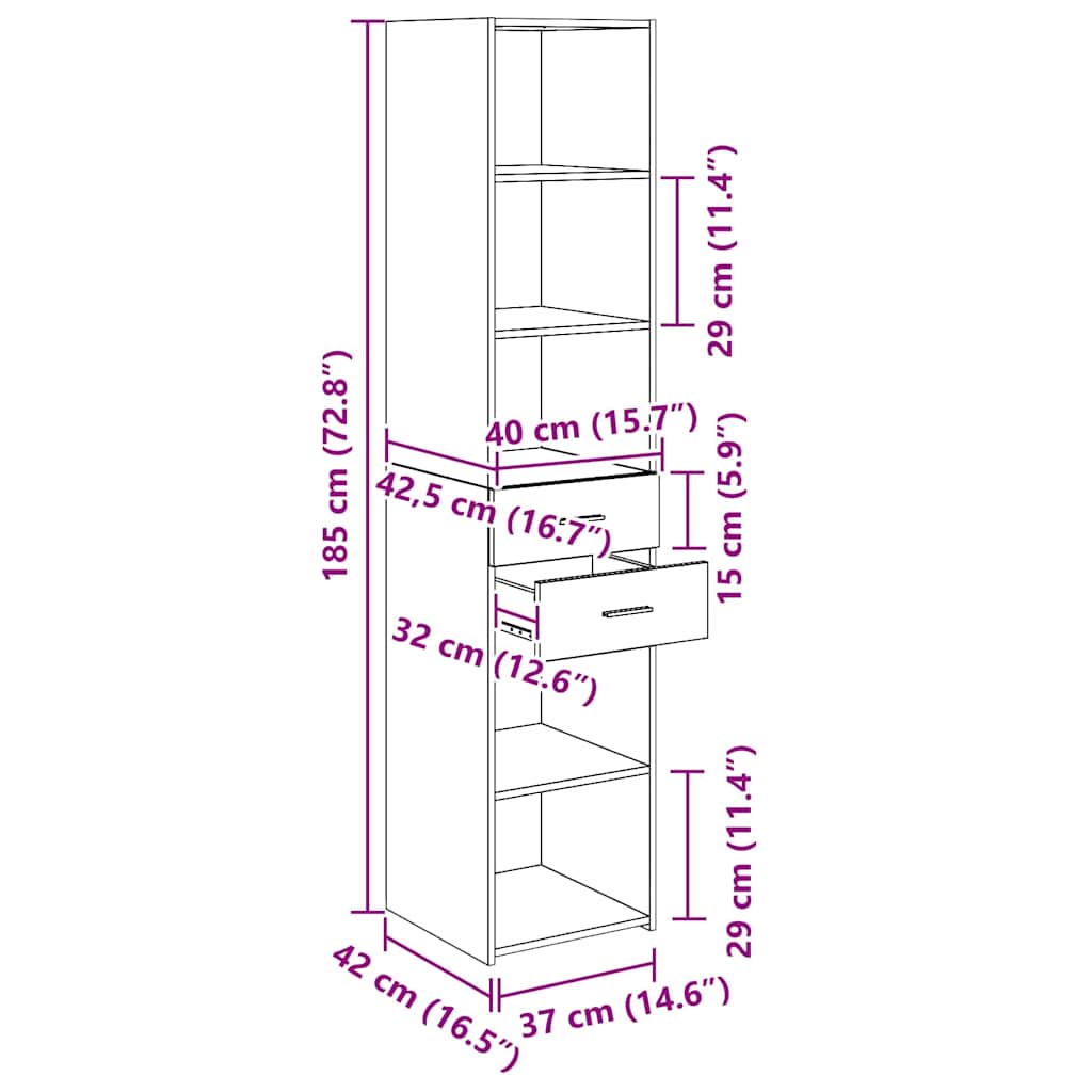 Bufet cu sertar Stejar Negru 40 x 42,5 x 185 cm Lemn compozit