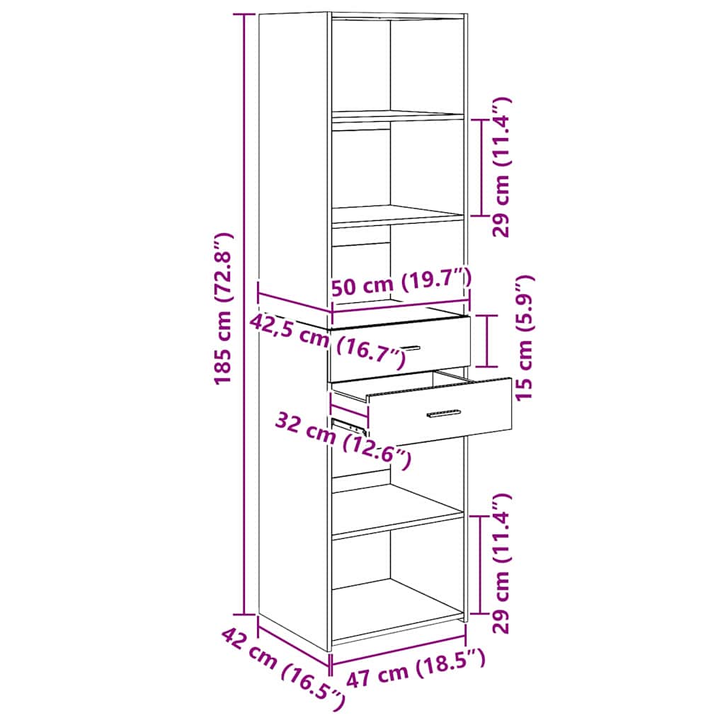 Bufet cu sertar Stejar Negru 50 x 42,5 x 185 cm Lemn compozit