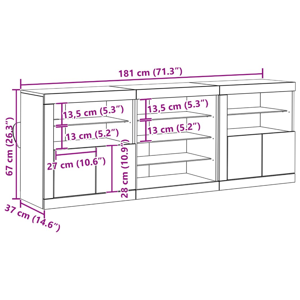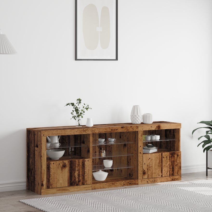 - Materiale: Bufetul ăsta elegant e făcut din lemn prelucrat de calitate, conceput să reziste, menținând totodată un aspect stilat care adaugă caracter camerei. Structura sa robustă asigură stabilitate și suport, făcându-l o soluție de stocare pe care poți conta în dining sau living.