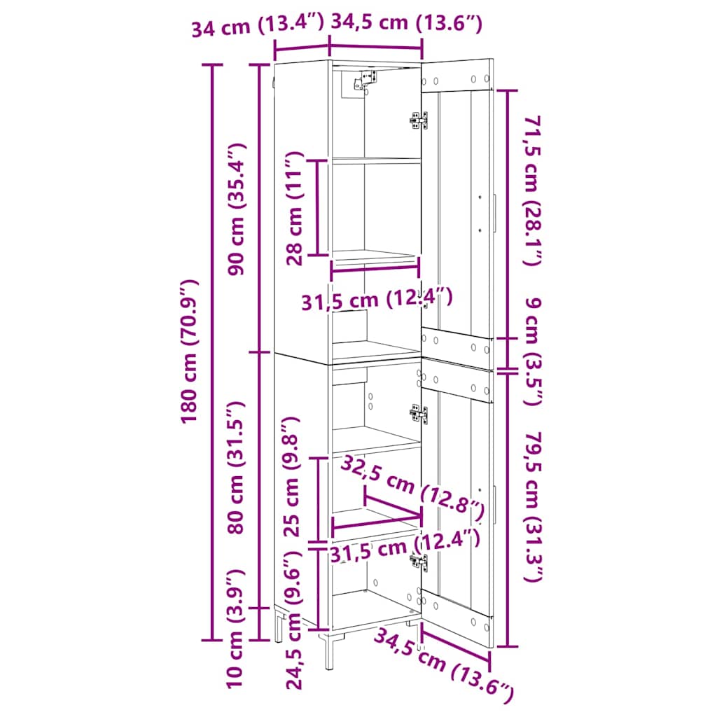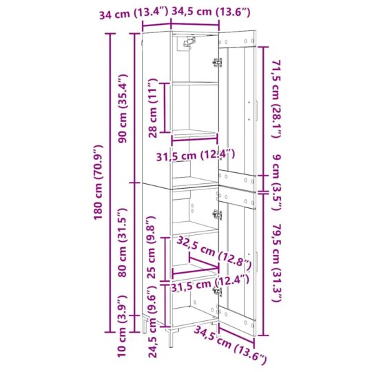 - Dimensiuni generale: 34,5 x 34 x 180 cm (l x ad. x î)