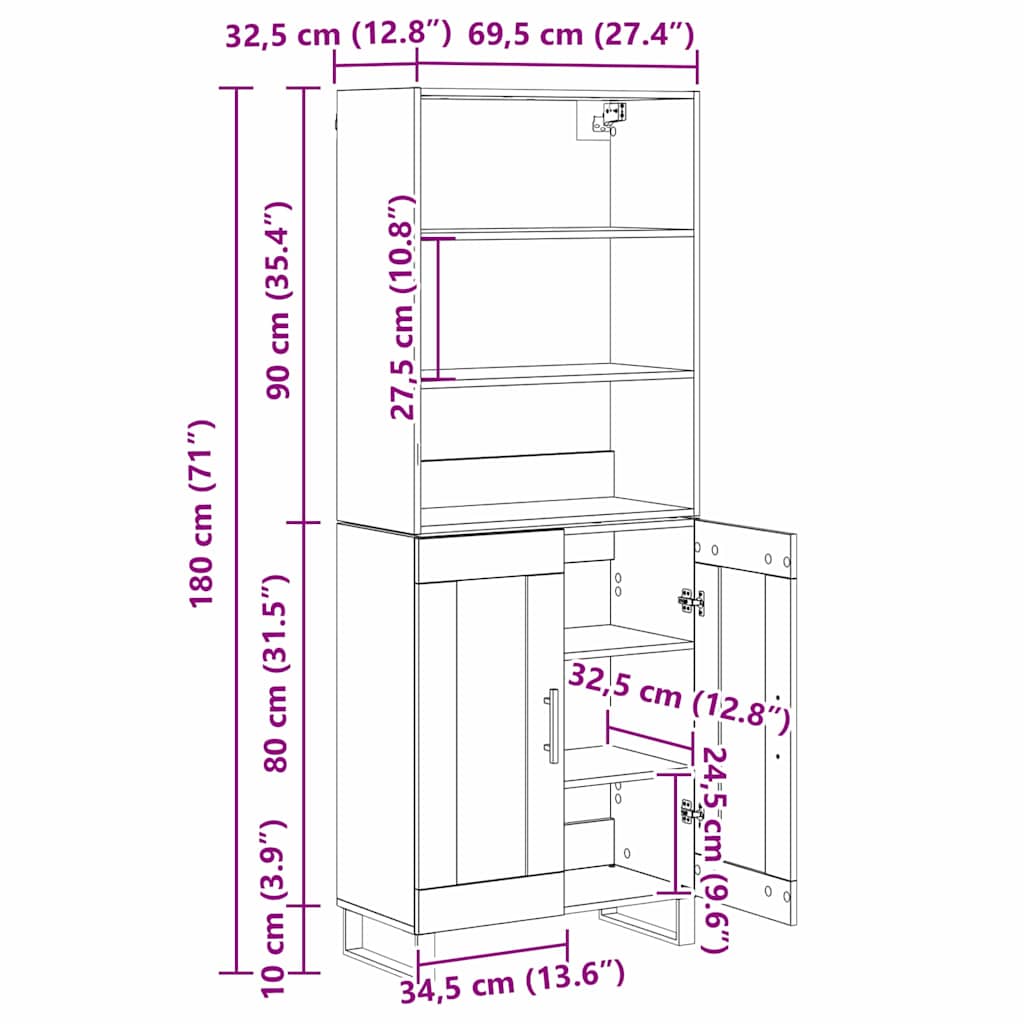 Bufet Lemn vechi 69,5 x 34 x 180 cm Lemn compozit
