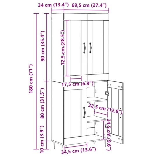 - 1 x Comodă: 69,5 x 34 x 90 cm (LxWxH)