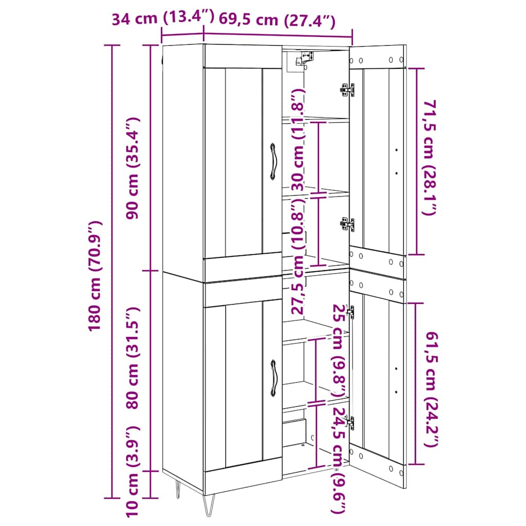 Bufet Lemn Vechi 69,5 x 34 x 180 cm Lemn compozit