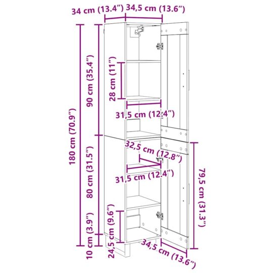 - Dimensiuni generale: 69,5 x 34 x 180 cm (l x ad. x î)