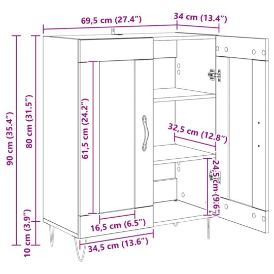 • Dimensiuni generale: 69,5 x 34 x 90 cm (L x l x î)