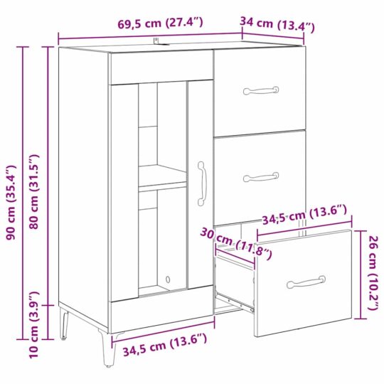 - Dimensiuni generale: 69,5 x 34 x 90 cm (L x l x î)
