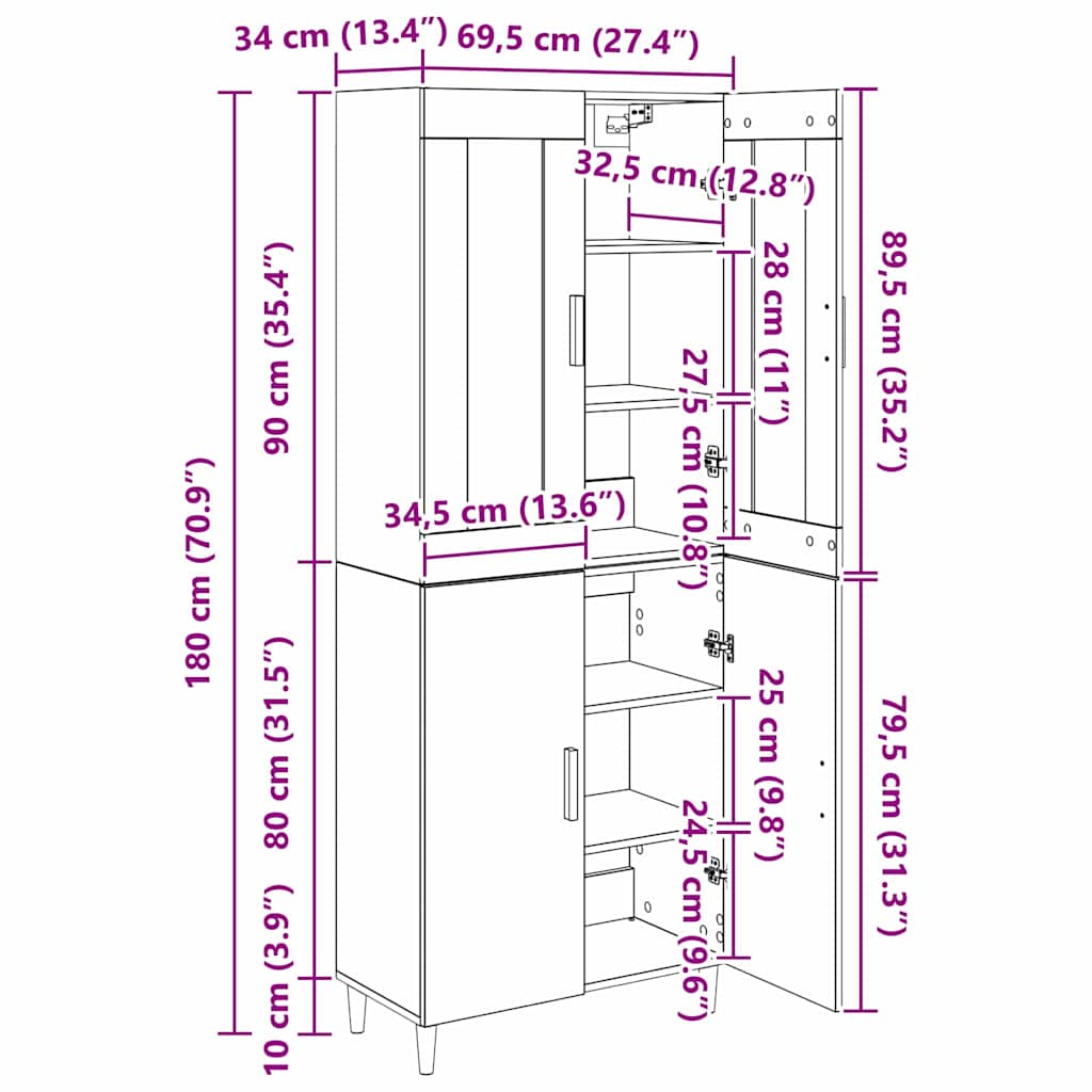 - 1 x Dulap: 70 x 34 x 90 cm (LxWxH)