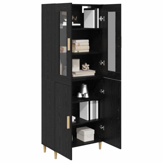- Material din lemn prelucrat: Highboard-ul e realizat din lemn prelucrat care e durabil, stabil și ușor de întreținut. E ideal pentru mobila folosită des, iar suprafața lui rezistă la pete, menținându-se strălucitor cu timpul. Se poate adapta la diferite finisaje, sporind atractivitatea.