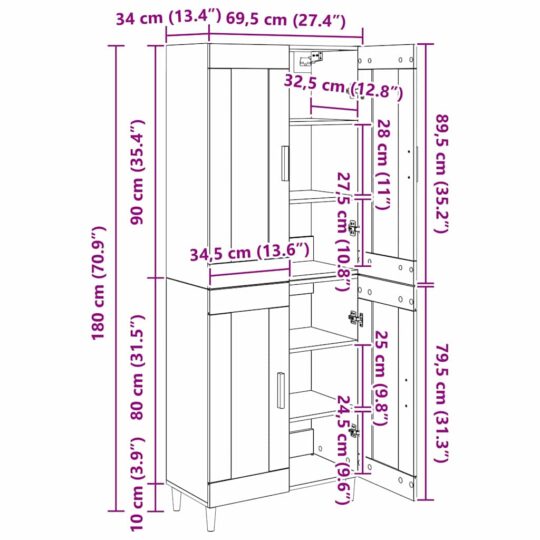 - Dimensiuni generale: 69,5 x 34 x 90 cm (L x l x î)