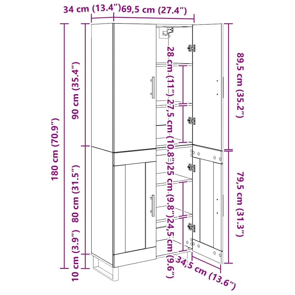 - Dimensiuni generale: 69,5 x 34 x 180 cm (L x l x î)