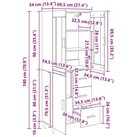 - Dimensiuni generale: 69,5 x 34 x 90 cm (L x l x î)