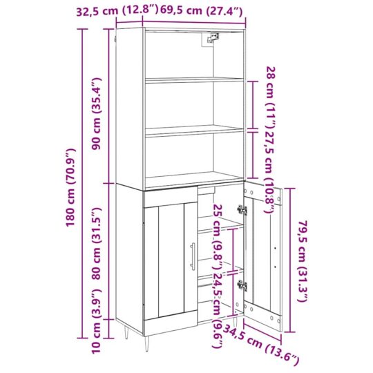 - Dimensiuni generale: 69,5 x 34 x 180 cm (L x l x î)