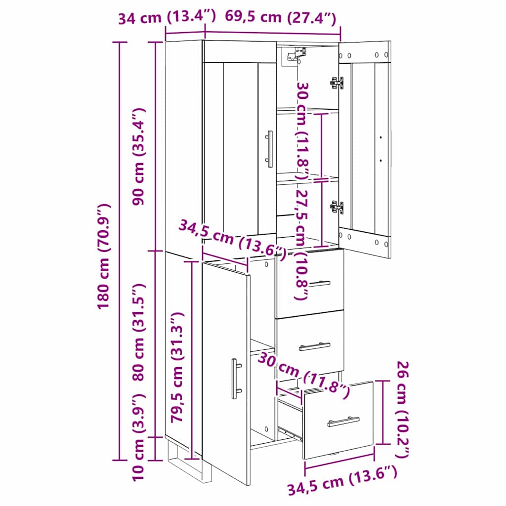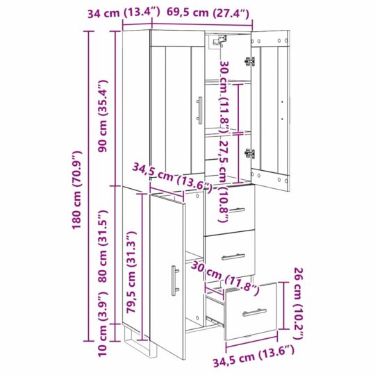 - Dimensiuni generale: 69,5 x 34 x 180 cm (L x l x î)