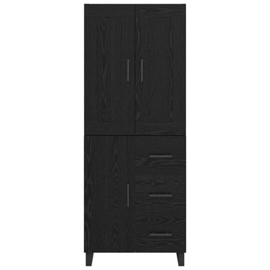 Bufet Pe perete cu sertar 2 pcs Stejar Negru Lemn compozit