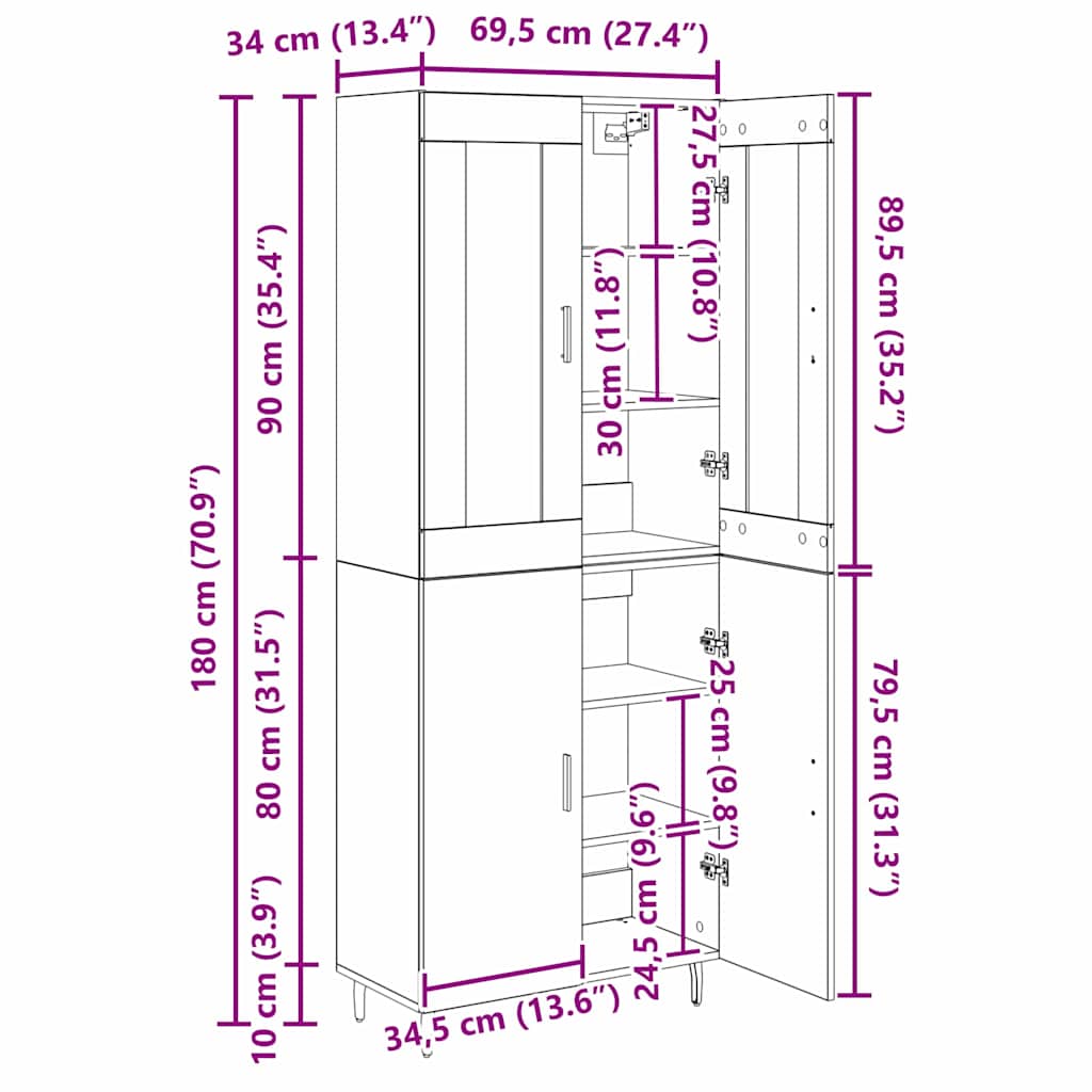Bufet Pe perete Stejar Negru 69,5 x 34 x 180 cm Lemn compozit
