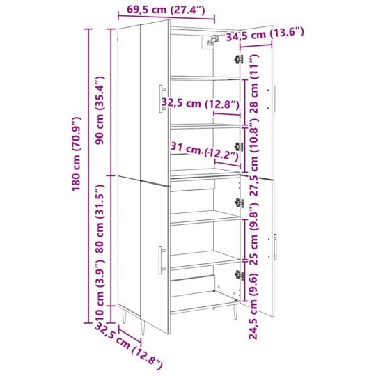 - Dimensiuni generale: 69.5 x 34 x 180 cm (L x l x î)