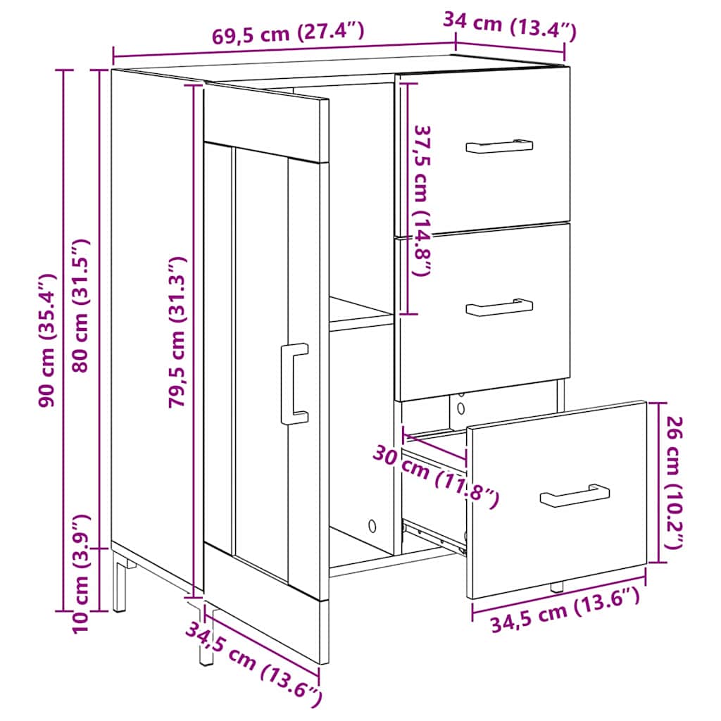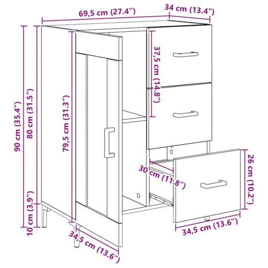 Bufet stejar artizanal 69.5 x 34 x 90 cm Lemn compozit