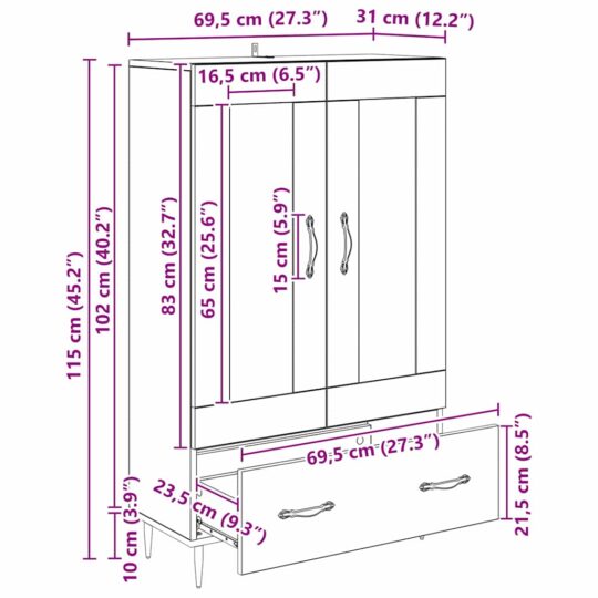 - Construcție din lemn prelucrat Highboard-ul e făcut din lemn de calitate, care rezistă bine în timp. Asta înseamnă că mobilierul rămâne parte din viața ta multă vreme. E și rezistent la uzură, așa că arată bine chiar și după utilizare frecventă.
