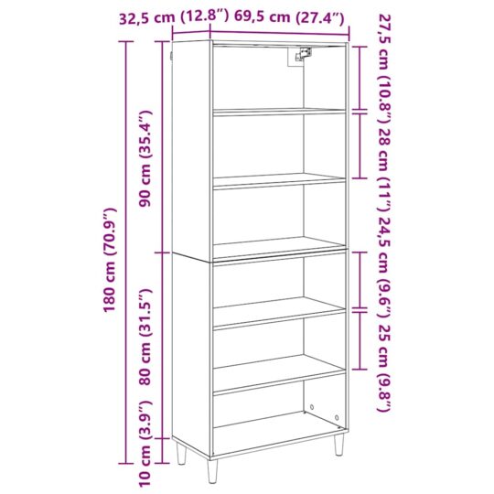 - Dimensiuni generale: 69,5 x 32,5 x 180 cm (L x l x î)