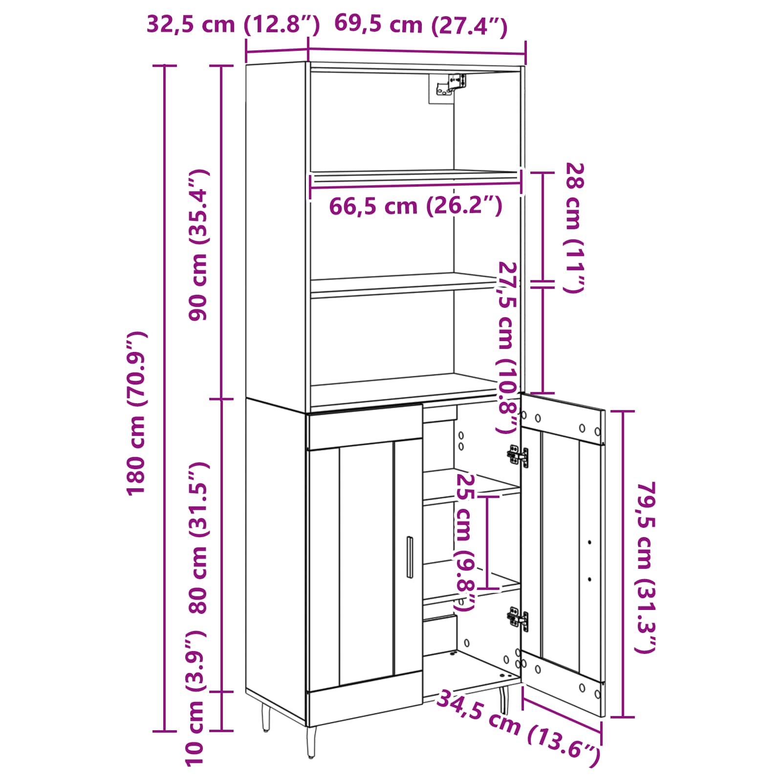 - 1 x Top pentru Highboard: 69,5 x 34 x 90 cm(LxWxH)