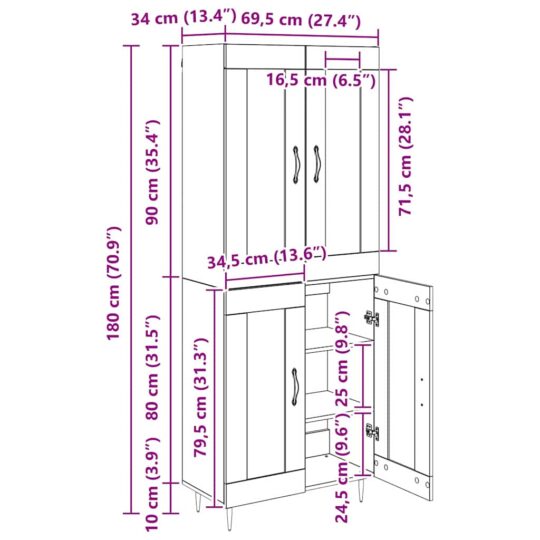 Bufet Stejar Artizanal 69,5 x 34 x 180 cm Lemn compozit