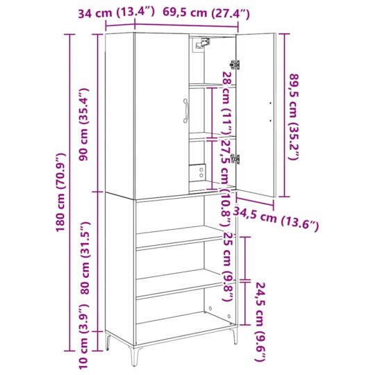 Bufet Stejar Artizanal 69,5 x 34 x 180 cm Lemn compozit