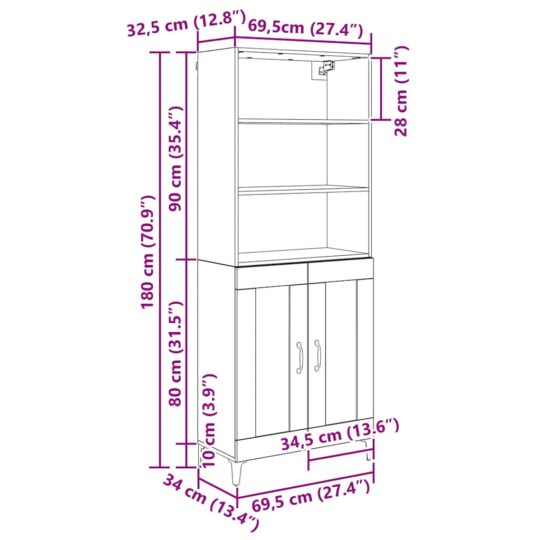 Bufet Stejar Artizanal 69,5 x 34 x 180 cm Lemn compozit