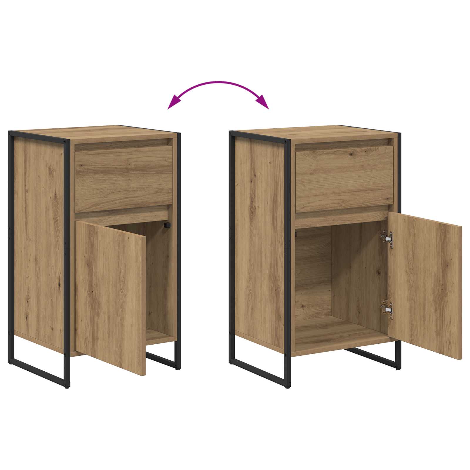 - Fuzionare stilată: Bufetul combină lemnul ingineresc și un cadru din oțel solid, oferind o soluție frumoasă și practică pentru nevoile tale de depozitare. Folosirea inteligentă a materialelor face din el o piesă care îmbunătățește aspectul oricărei camere, având în același timp o utilitate reală.