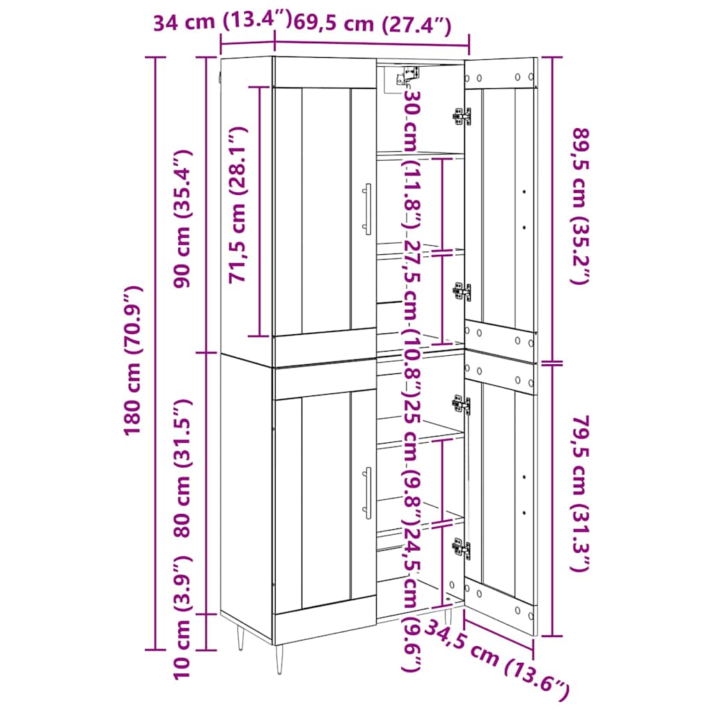Bufet Stejar Negru 69,5 x 34 x 180 cm Lemn compozit