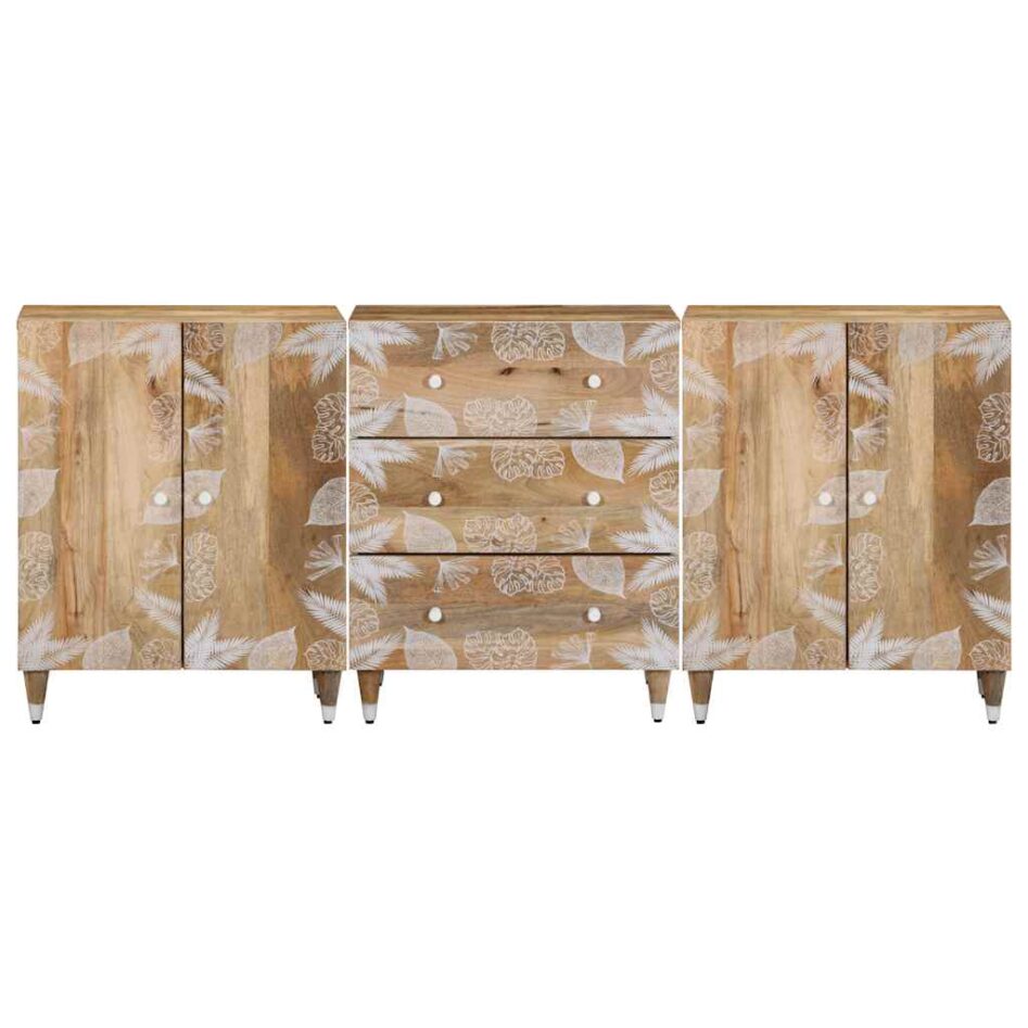 Bufete 3 buc 60×33,5×75 cm lemn masiv de mango