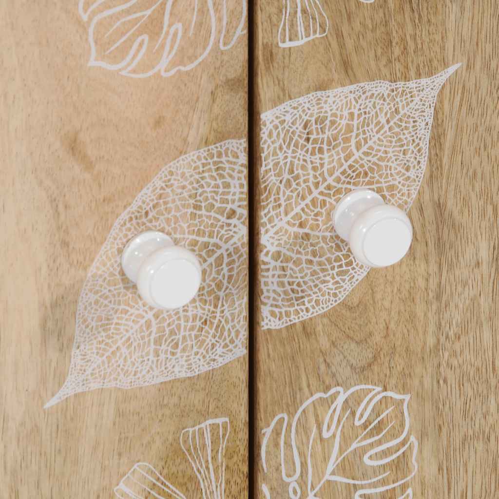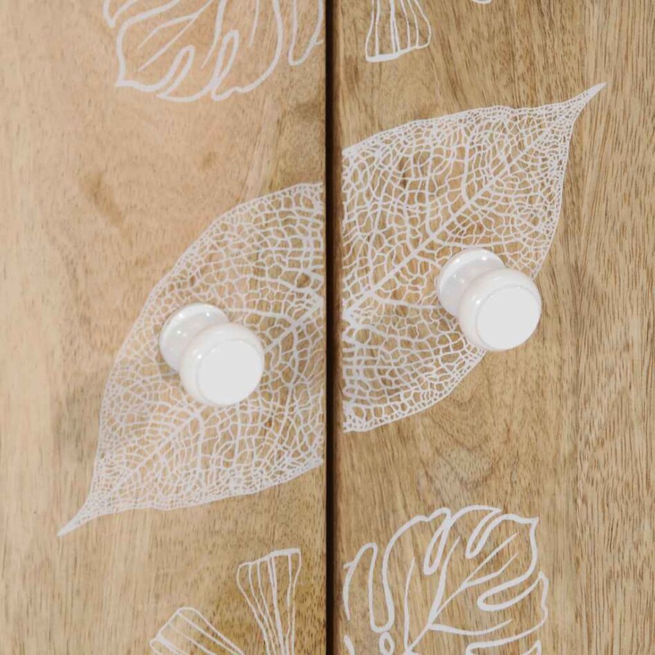 - Material: Mango natural cu ecran de vopsea albă, lemn prelucrat, metal