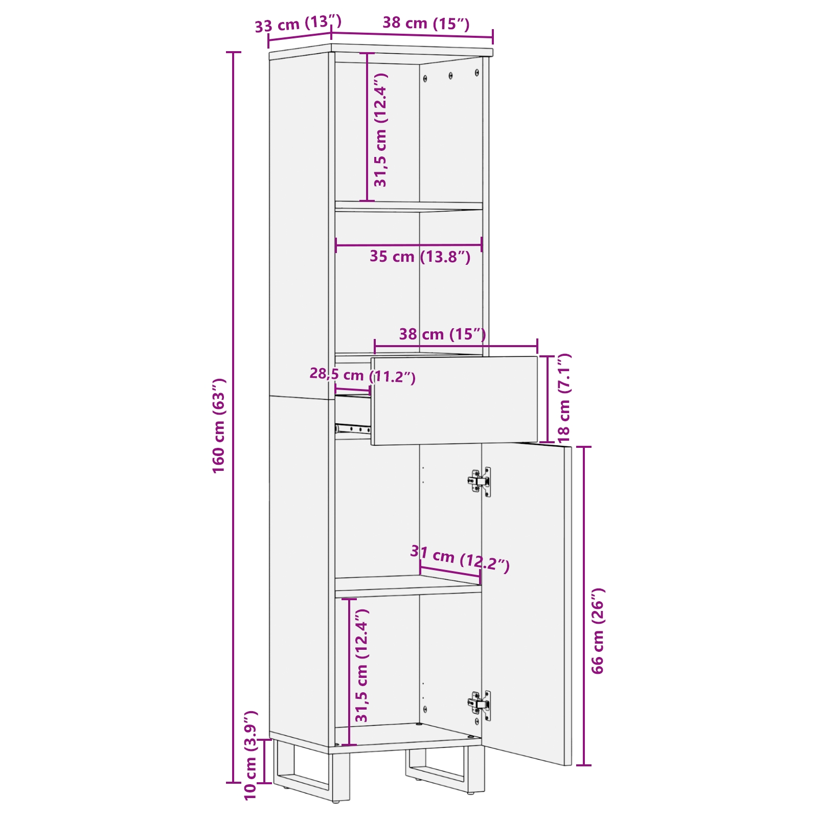 Dulap de baie cu raft Maro 38 x 33 x 160 cm Lemn masiv de mango