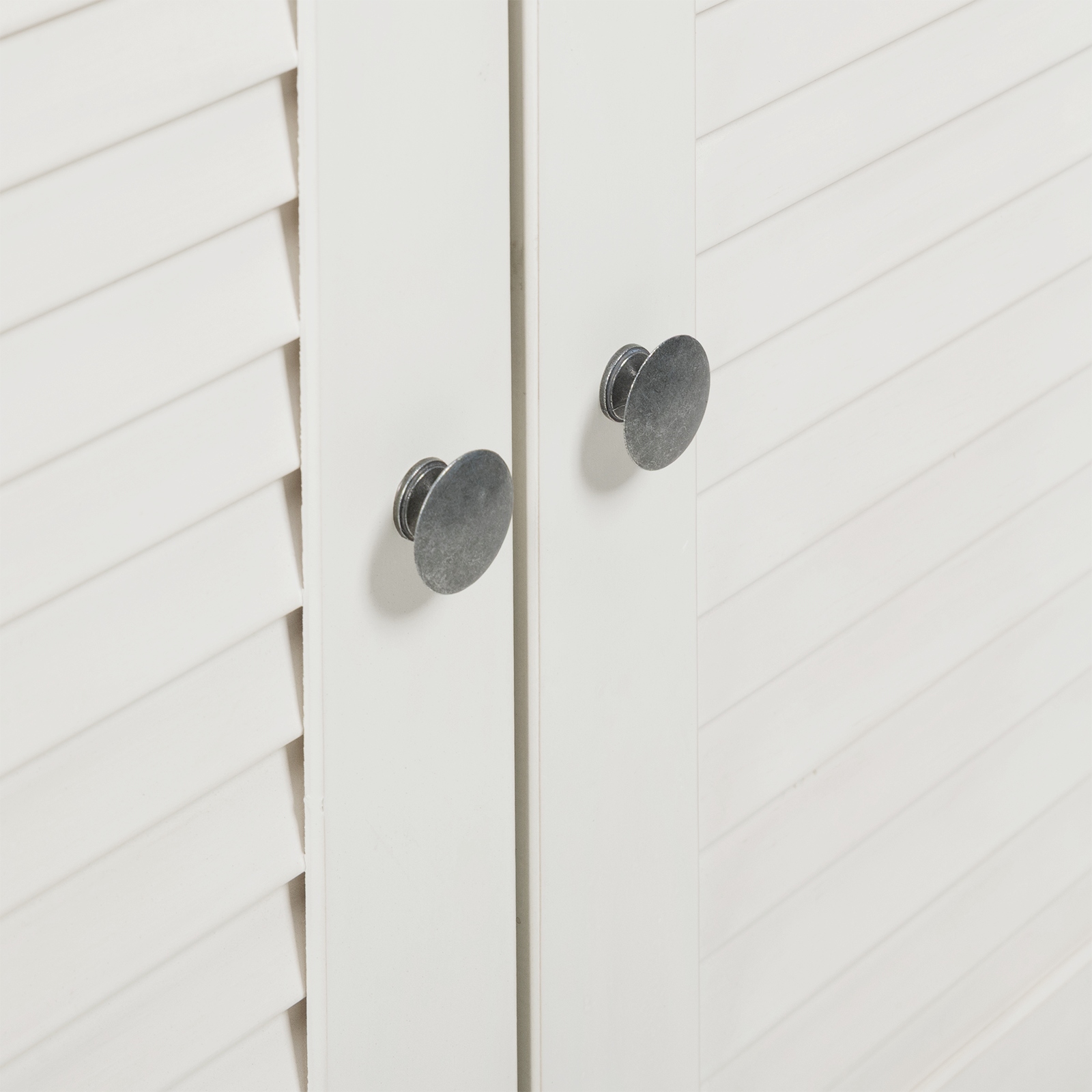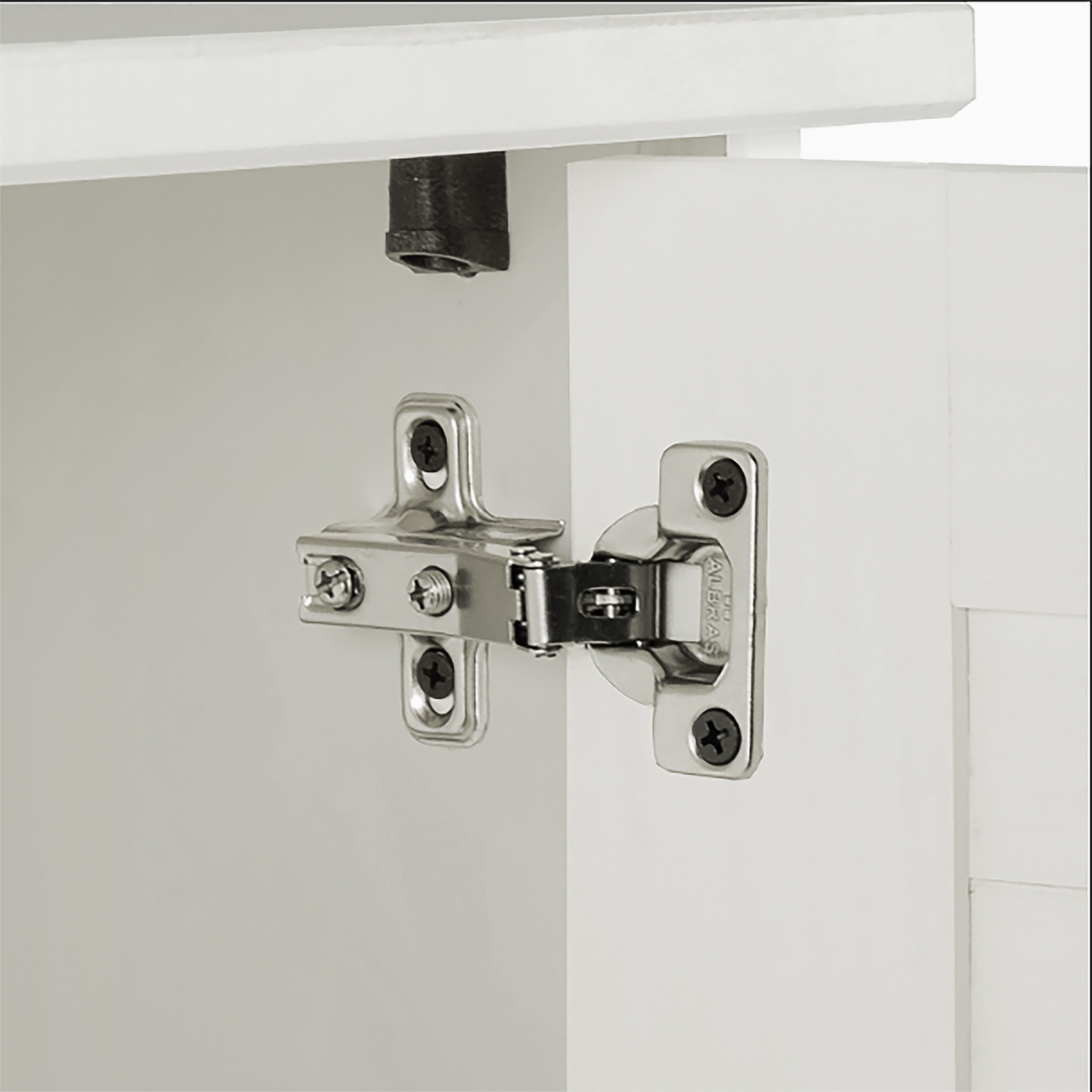- Solutie de Stocare Cu rafturi și ușă cu balamale, cabinetul are destul loc pentru să-ți pui toate esențialele de baie. E perfect pentru cosmetice, prosoape și produse de curățenie, păstrându-ți totul ordonat.