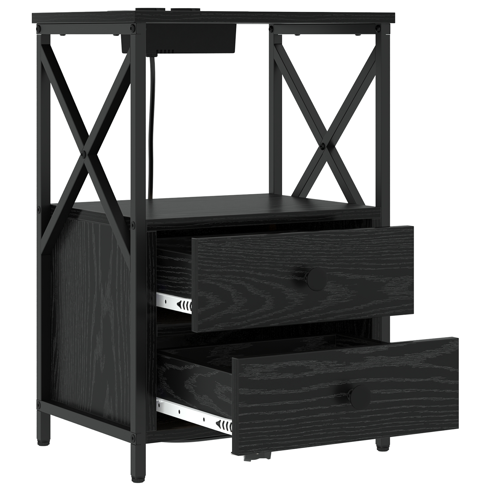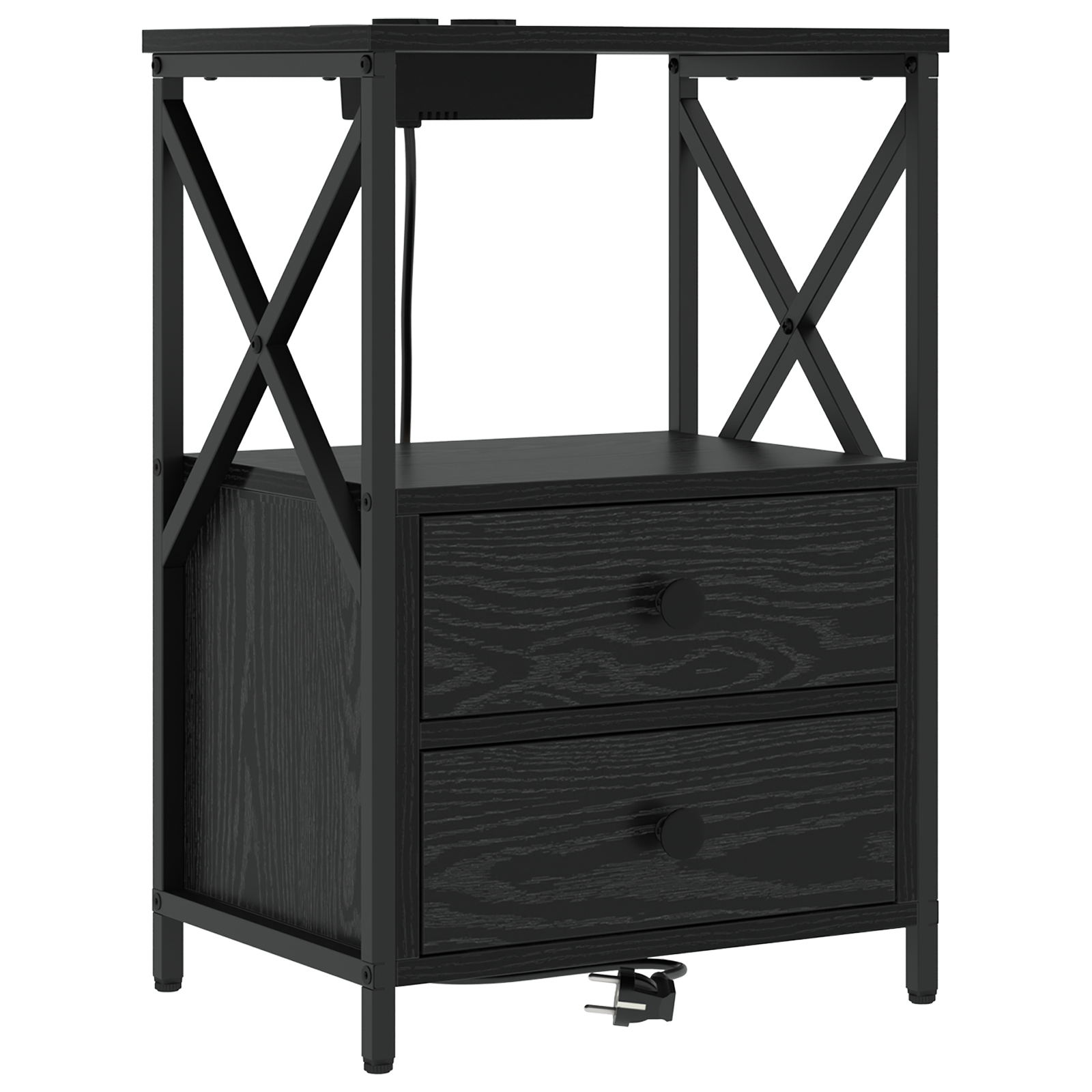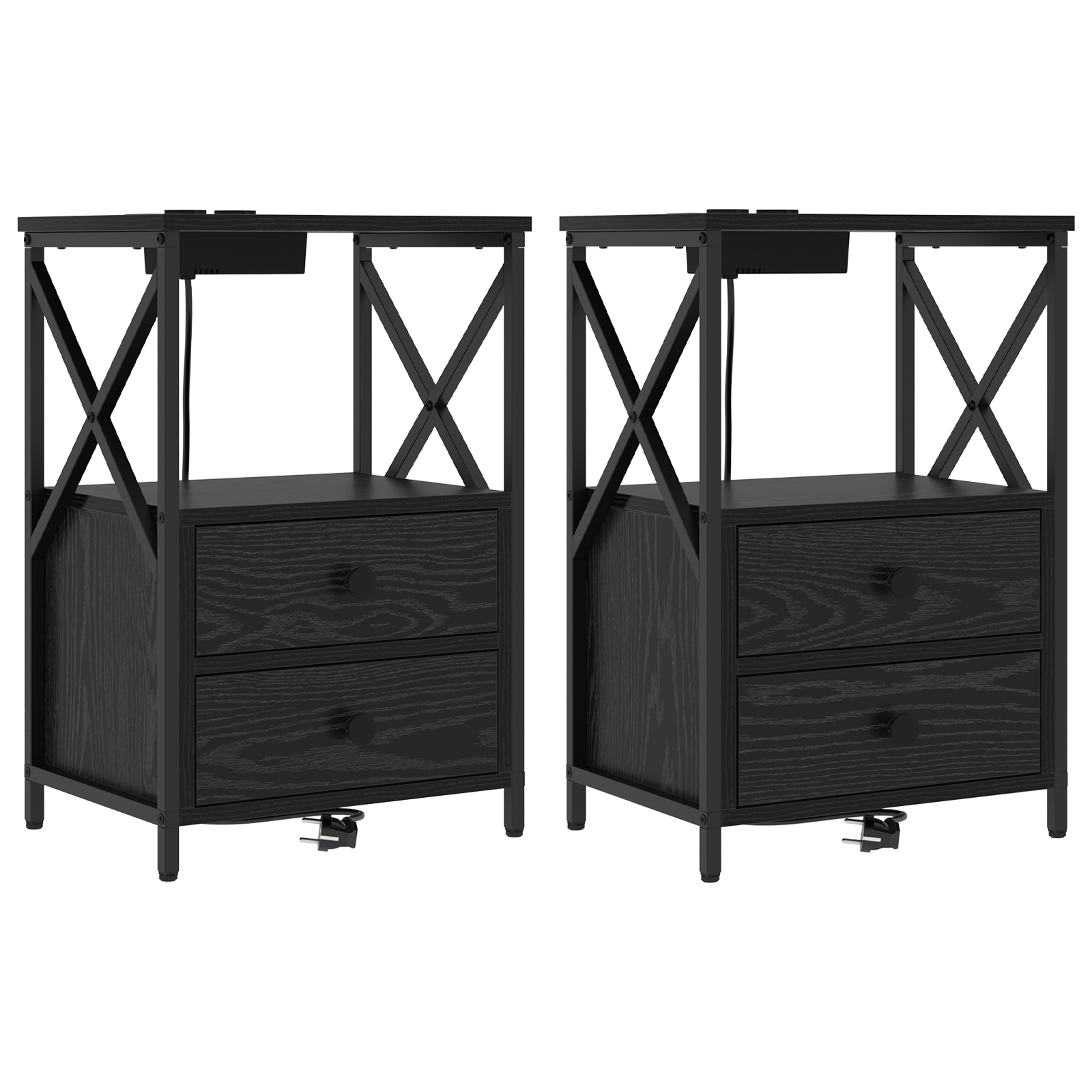 Cabinet de noptiere cu stație de încărcare 2 pcs Stejar negru